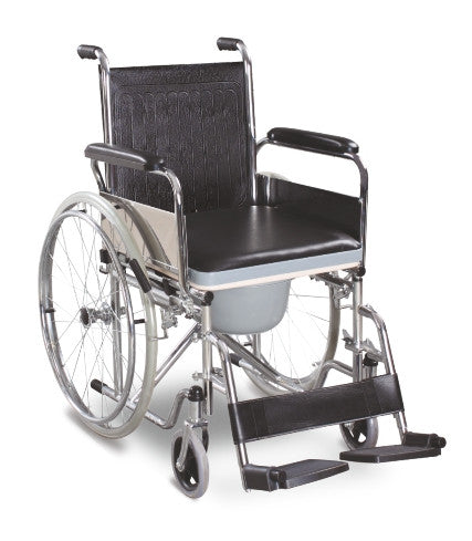 This wheelchair is a combination of Commode and a Wheelchair, which can be easily folded and carried anywhere.