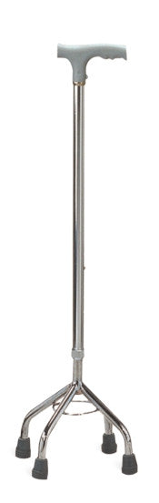 The stainless steel four legged walking stick gives extra support to users while walking.